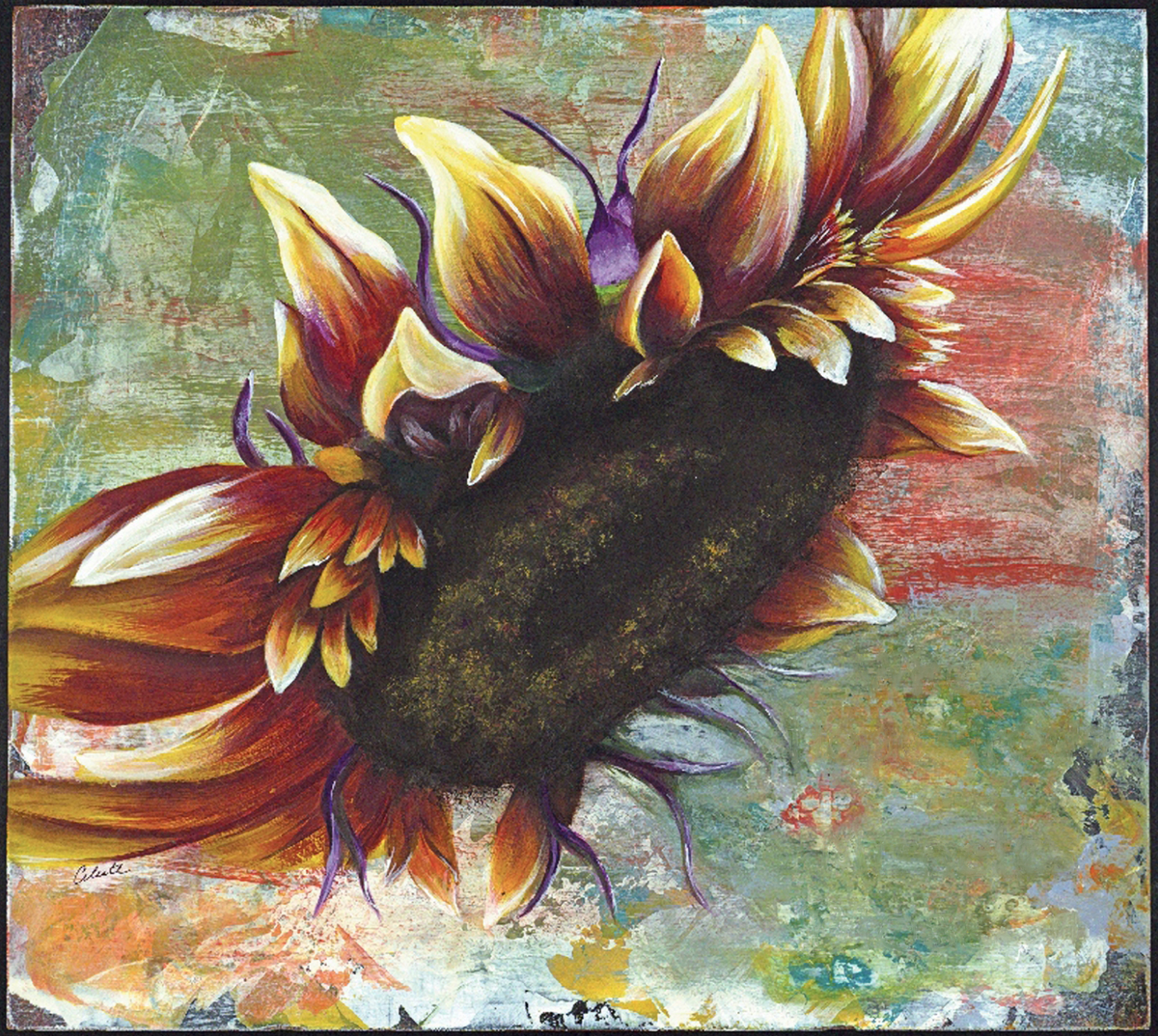 For me, flowers represent life. I painted this piece about 1 year after my breast cancer treatment was finished, and I added a bit of inspiration.