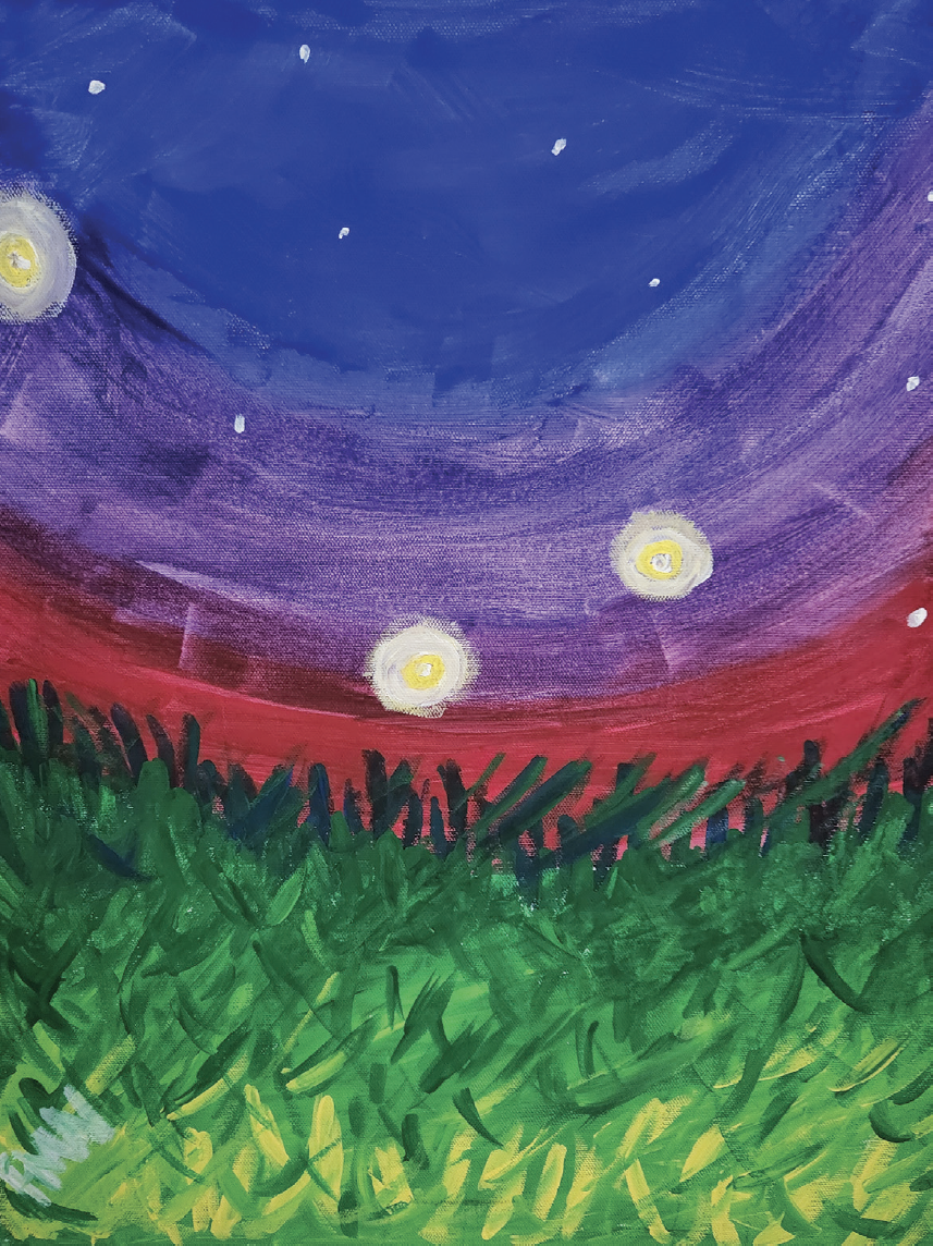 I was diagnosed with stage IV non-Hodgkin lymphoma in 2019. I received 9 months of chemotherapy, twice weekly. Working on these 2 paintings helped me to have tranquil moments during the time I was receiving chemotherapy. I have since done more paintings but have been giving them away to friends and family members.