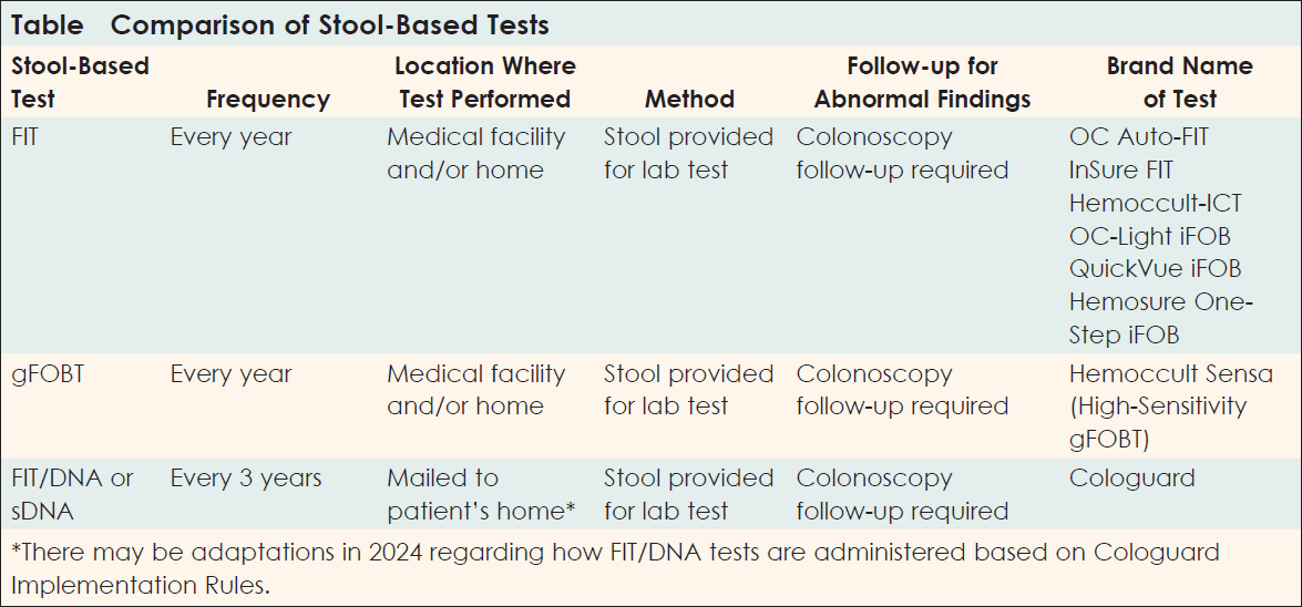 The good news is that stool-based tests are typically covered by insurance for most individuals and are all effective in detecting CRC. For uninsured patients, the FIT and FOBT are relatively inexpensive to pay out of pocket for a test.