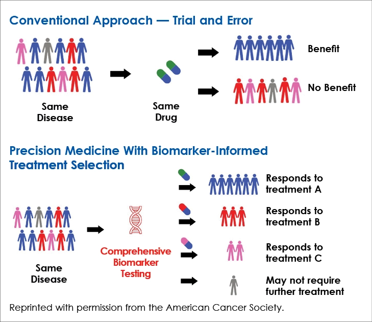 By testing for certain markers, doctors are able to match that specific type of cancer to a treatment that is more likely to be effective; this is called a targeted treatment. Targeted treatments allow some people to avoid broader, systemic treatments, such as chemotherapy and radiation treatments, and instead receive precision treatments that often have fewer side effects and may offer a better outcome. Importantly, this also allows your healthcare team to avoid treatments that will be ineffective, saving valuable time and costs.
