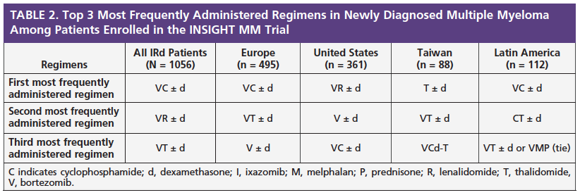 There were regional differences in treatment selection. Among the immunomodulatory drugs (IMiDs), thalidomide (Thalomid) was more commonly prescribed in Europe, Taiwan, and Latin America, and lenalidomide (Revlimid) was more commonly used in the United States.